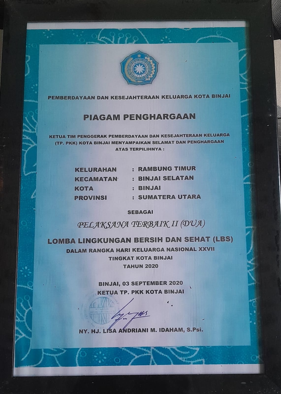 Piagam Penghargaan Pemberdayaan dan Kesejahteraan Keluarga Kota Binjai Tahun 2025